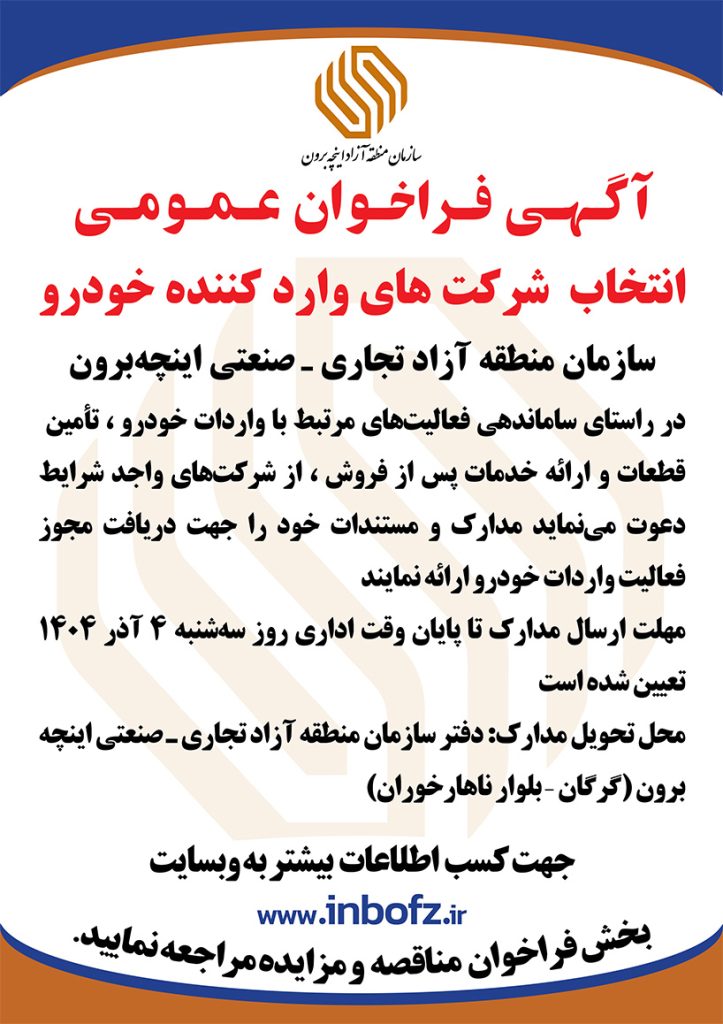 - یکپارچگی فرایند صدور مجوزها توسط سازمان منطقه آزاد اینچه برون